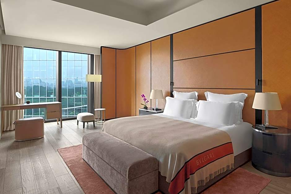 The 71 square-yard junior suites are characterized by an innovative elm wood alcove that leads to a large room and a spacious seating area. The Italian custom-designed furnishings and décor create a refined yet welcoming atmosphere, an expression of the constant attention to detail for which Bulgari is famous. The suites can connect to other rooms and offer a comfortable king size bed.